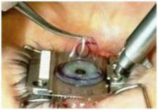 An automated device called as Microkeratome is used to make a horizontal section of cornea to fashion a hinged flap. This flap is lifted so as to expose deeper layers of cornea where reshaping is done with excimer laser. The flat is then replaced back where it sticks to the reshaped corneal bed.